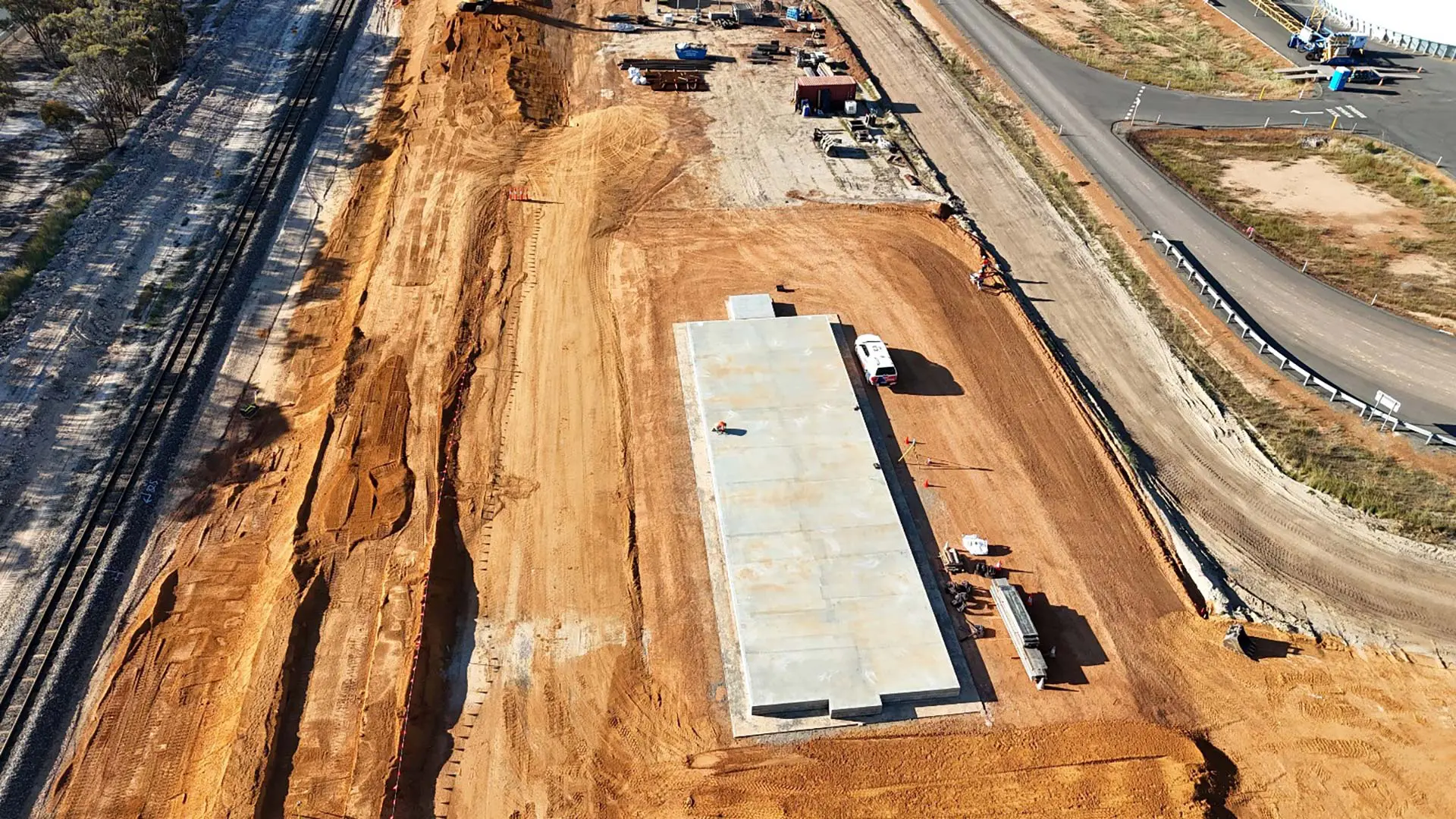 In the civil infrastructure space, SLM excels in earthmoving, excavation, and site preparation, delivering robust foundations for diverse projects. We are experts in constructing bridges and tunnels, installing essential utilities such as power and telecommunications, and executing precision grading services. Our work with concrete structures spans slab tracks, reinforced steel installations, grout and epoxy pours, and in-situ U-drains, meeting multiple client specifications and quality assurance standards.